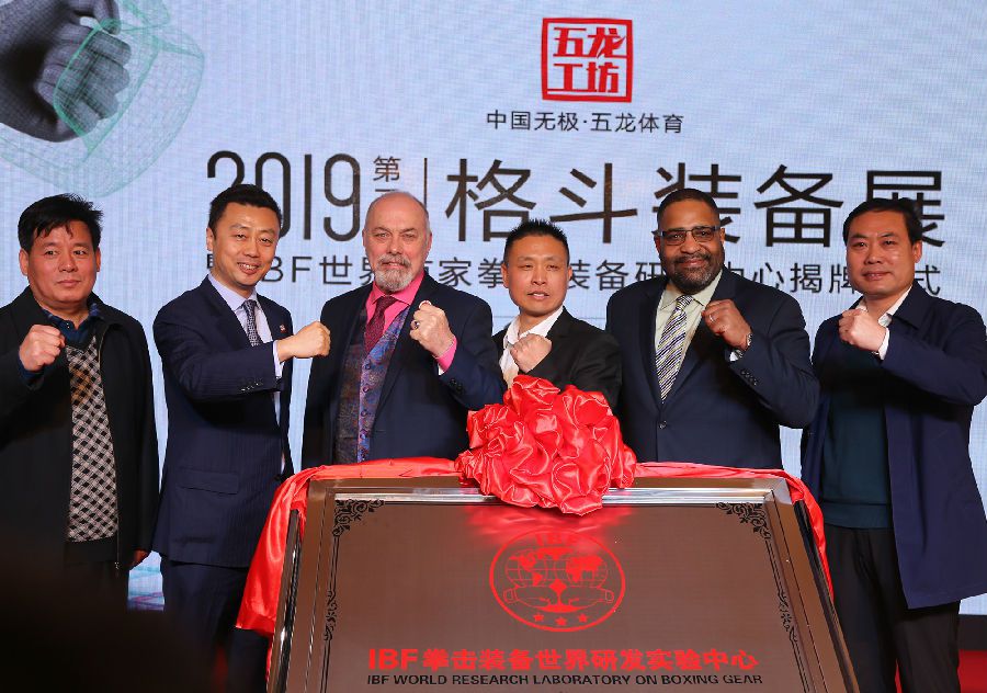 3月28日上午,IBF(世界拳击联合会)世界首家拳击装备研发试验中心揭牌仪式在石家庄无极县五龙体育公司举行。