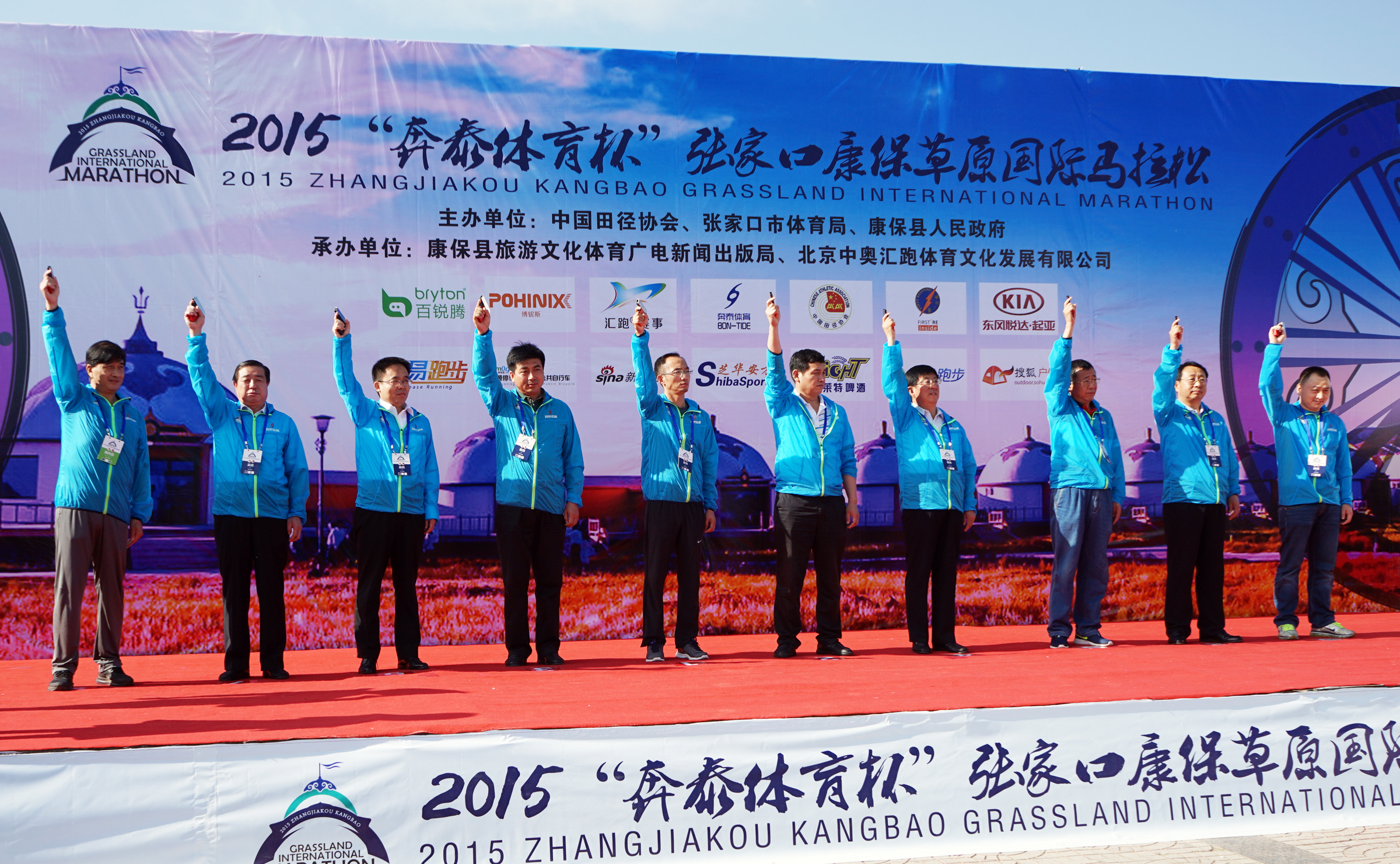 6月27日,以“纵马草原,助力申奥”为主题的“2015张家口·康保草原国际马拉松赛”鸣枪开跑比赛,共有来自肯尼亚、美国、法国、瑞典、蒙古等多个国家及中国香港、台湾地区的990多名马拉松专业选手参赛,其中788名选手参加了全程马拉松比赛,202名选手参加了迷你马拉松比赛,当天的助跑团队总人数达1万余人。