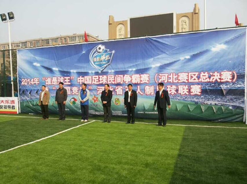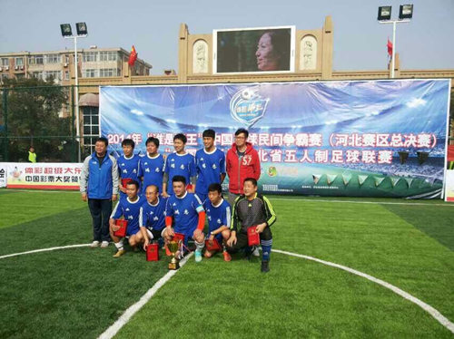 2014年“谁是球王”中国足球民间争霸赛(河北赛区石家庄海选)暨“中国竞彩”河北省五人制足球联赛河北赛区海选经过两个多月的紧张筹备,于10月12日在石家庄和秦皇岛两个城市同时开赛,本次海选设有娃娃组、青少组和社会组三个组别。比赛采用小组循环和淘汰赛相结合的赛制,共有217支球队(石家庄125支,秦皇岛92支)两千多人参加了303场比赛,河北区海选赛历时长,报名人数多,资格审查难度大,参加范围广。年龄最大的45岁最小的7、8岁。最终产生了三个组别的六个冠军。他们是:石家庄赛区娃娃组冠军:石家庄市谈固小学依林山庄足球队,青少组冠军是:石家庄市第四中学足球队,社会组冠军是:保定鸿志足球队。秦皇岛赛区娃娃组冠军是:保定市前卫路小学足球队,青少组冠军是:秦皇岛市七中足球队,社会组冠军是:唐山爱运动足球队。
