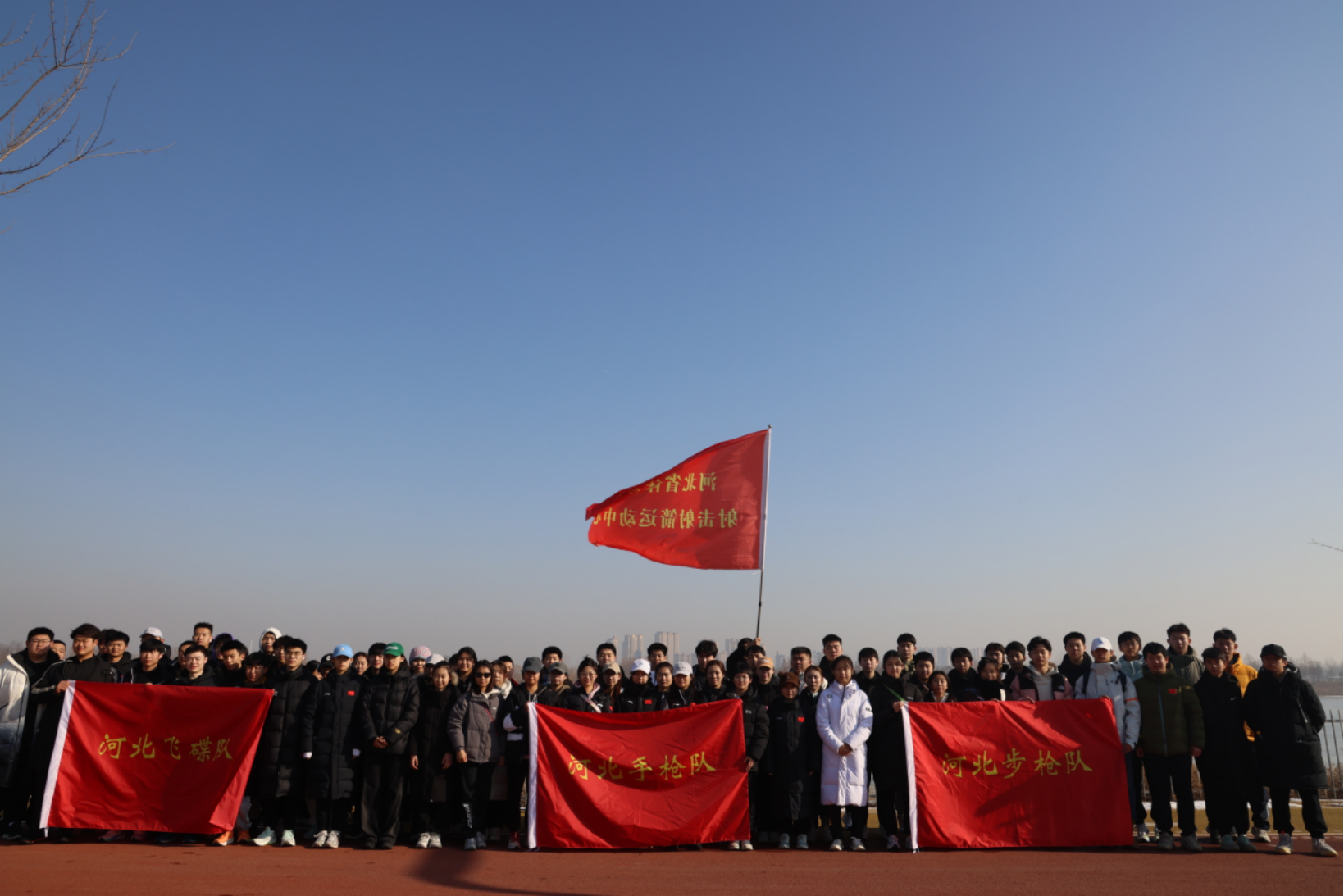 上午10点,全体人员在院内集合,做拉伸运动。随后从中心出发,穿过热闹的菜市场,途径塔元庄景区,沿着周边街道向滹沱河前行。大家整齐列队,步伐矫健,一路高举着旗帜迎风挥舞,全体队员高喊着“我将无我 不负祖国 河北射击 再创辉煌”的口号,迎着冬日的暖阳,一个个精神抖擞、斗志昂扬地朝着目的地前进。